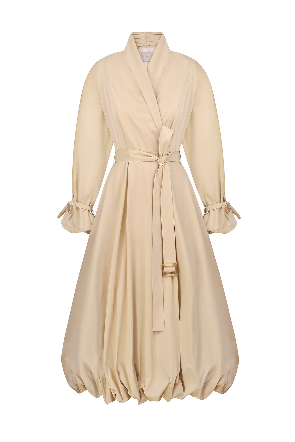 Преміальна італійська бавовна розкриває свій характер у кожному з трьох образів тренчу. Знімна кокетка на плечах створює графічний силует, а висока стійка коміра додає структурності. Можливість змінювати деталі перетворює тренч на живу форму, що адаптується до настрою та контексту.